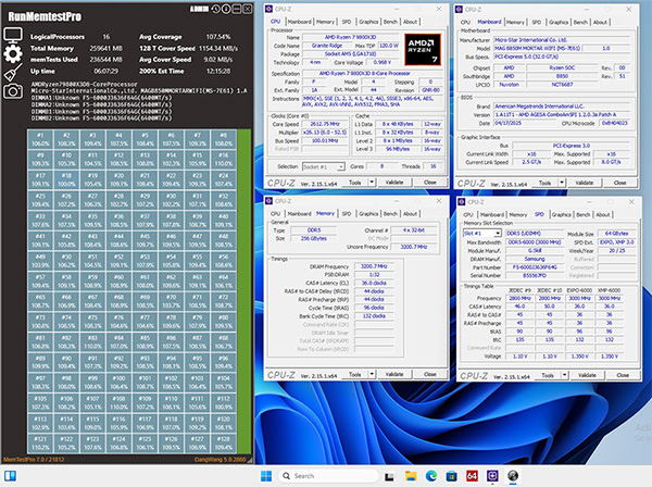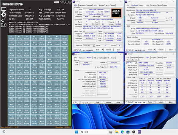 Die MSI-Mainboards wurden gezielt für die Übertaktung großer DRAM-Kapazitäten optimiert und sind mit Speicherchips von Micron, Hynix und Samsung kompatibel. Selbst bei Nutzung aller vier 64GB-Module erreicht das System stabile Übertaktungsgeschwindigkeiten von 6000MT/s und in manchen Fällen sogar von bis zu 6400MT/s.