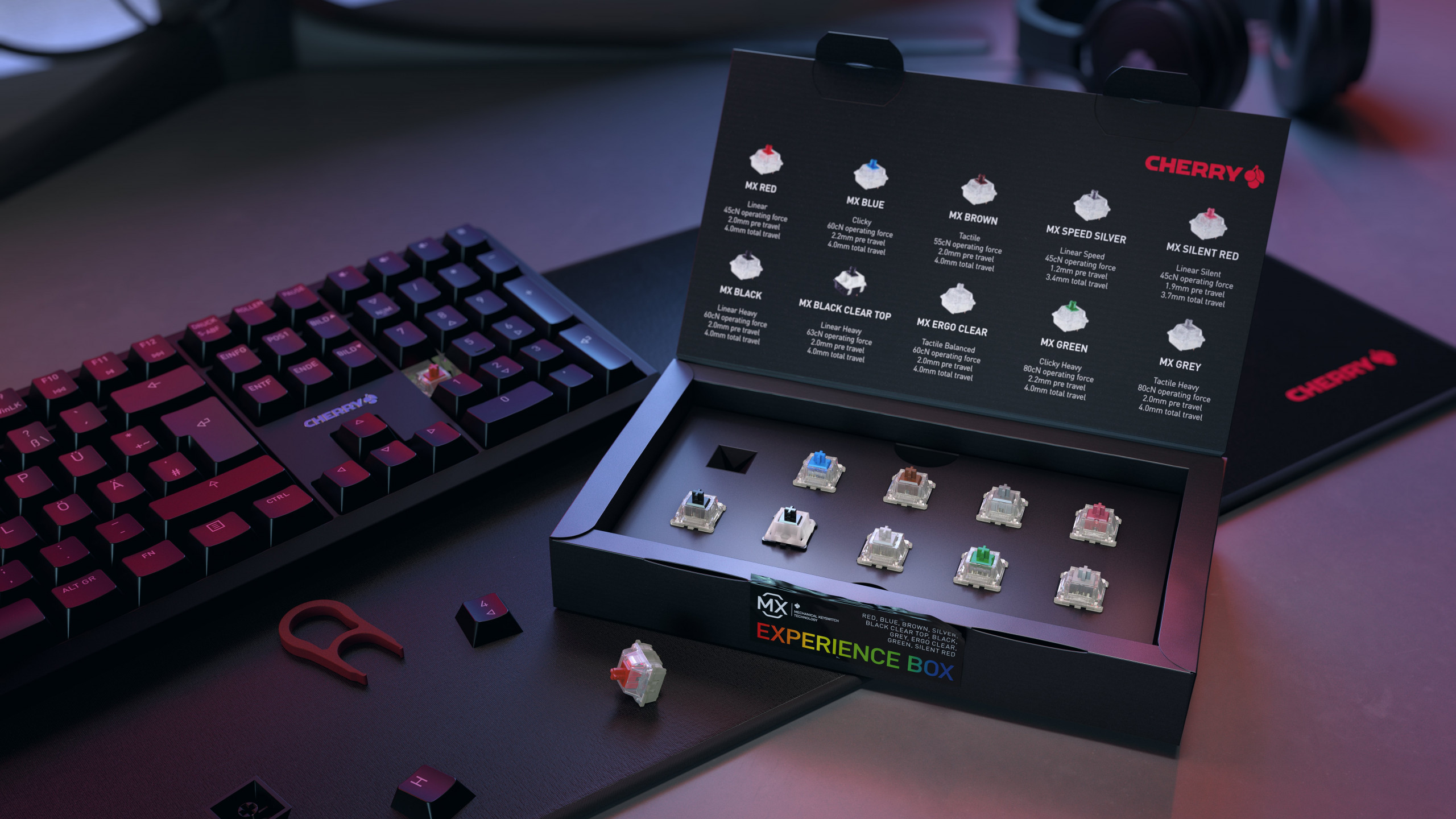 CHERRY, Spezialist für Computer-Eingabegeräte und Marktführer im Bereich mechanischer Tastenschalter, bietet mit der neuen MX Experience Box alle derzeit erhältlichen Switches in einer formschönen und informativen Verpackung zum Erleben an. Davon profitieren nicht nur DIY-Enthusiasten und Sammler, sondern auch unerfahrene Nutzer, die die Vielfalt probieren