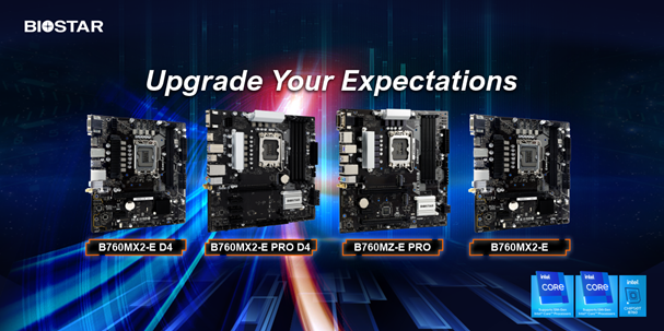 BIOSTAR, ein führender Hersteller von Motherboards, Grafikkarten und Speichergeräten, gibt die leistungsstärksten Business- und Casual-Motherboards für Intel Core-Prozessoren der 12/13. Generation im Jahr 2023 bekannt. Ein Computer-Motherboard mit schwarzem Hintergrund Beschreibung automatisch generiertEin Computer-Motherboard mit schwarzem Hintergrund Beschreibung automatisch generiert Die Motherboards B760MX2-E, B760MZ-E PRO,