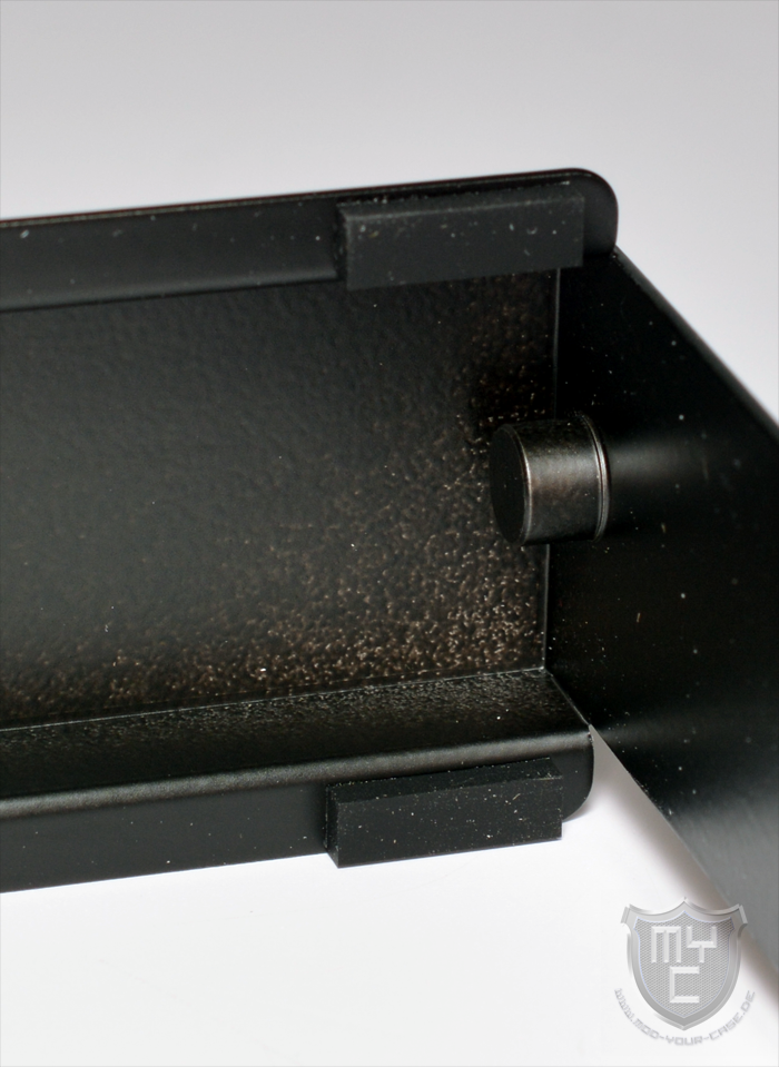 Auf der Innenseite wurde die Kühlerabdeckung auch im Bereich dieser Aussparung mit kleinen Gummientkopplern ausgestattet.
