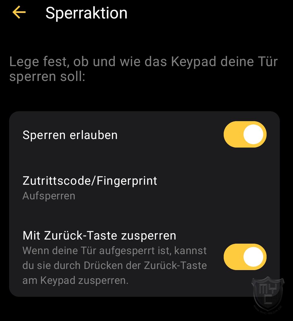 Koppelt man das Keypad 2 mit einem kompatiblen Smart Lock, so kann man im Anschluss noch einstellen, ob man das Keypad auch zum Zusperren verwenden möchte oder nicht. Sollte man diese Funktion nutzen wollen, so kann die Sperraktion durch das Betätigen der Zurück-Taste erfolgen.