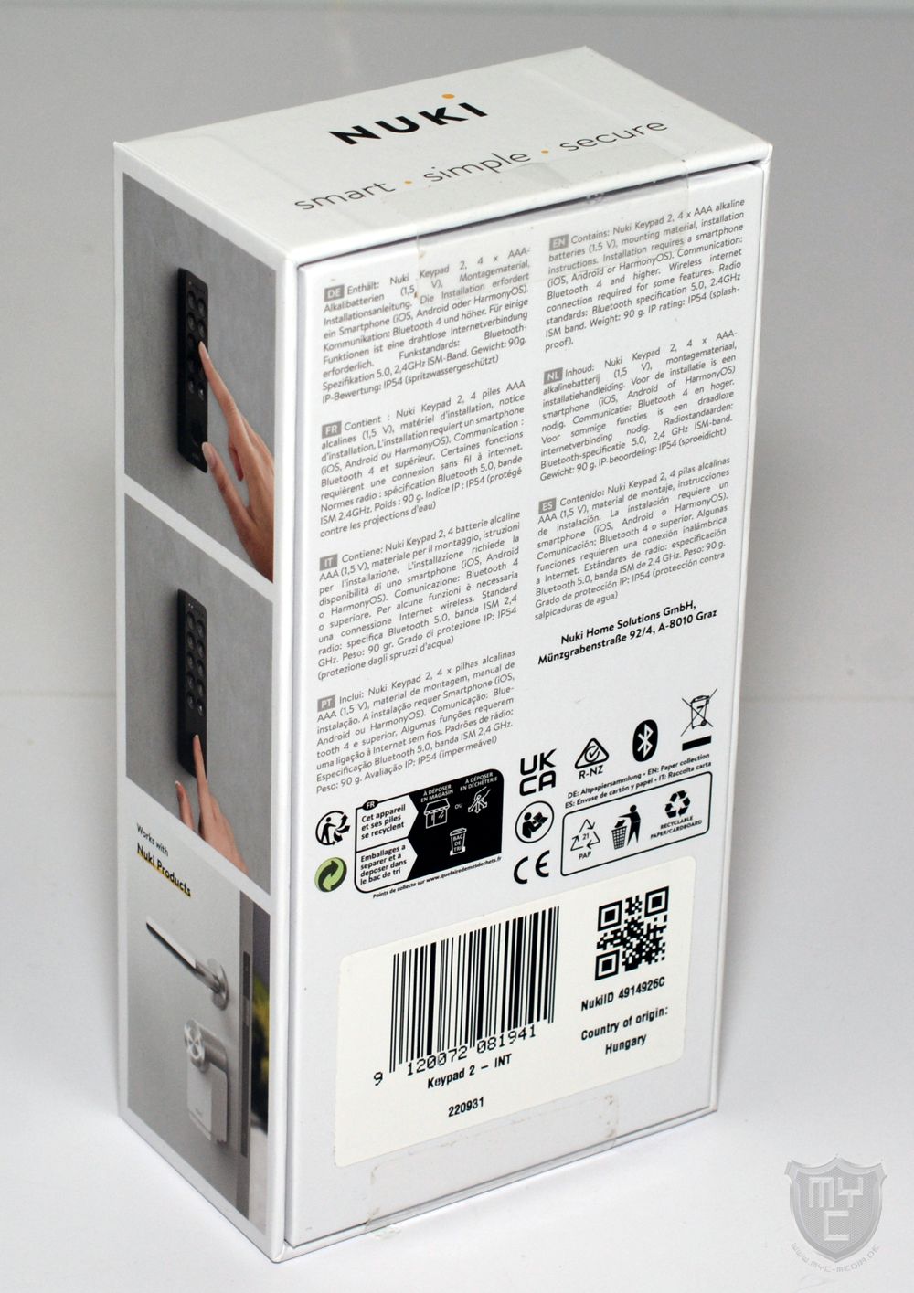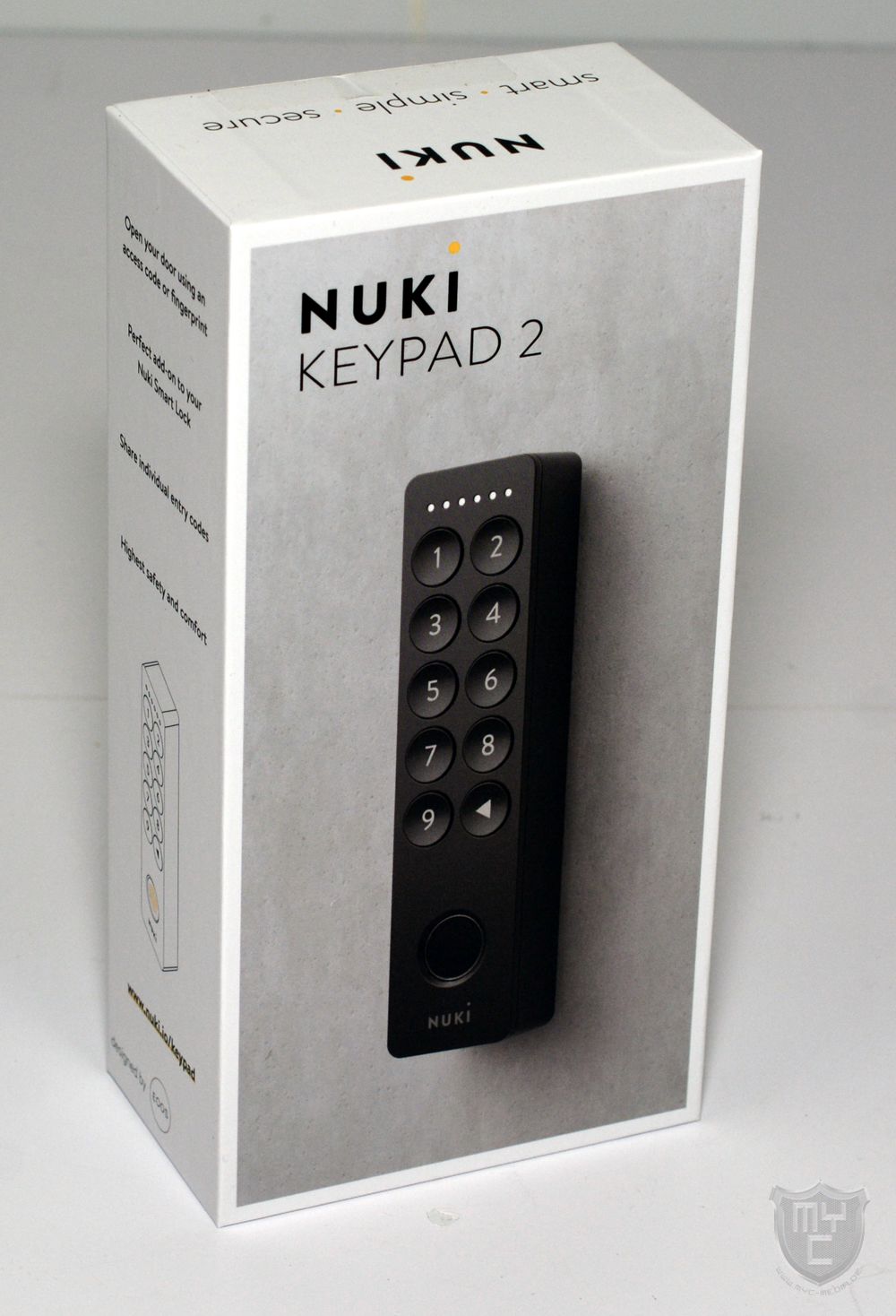 Das Nuki Keypad 2 wird in einer Verpackung geliefert, welche in einem weißen Grunddesign gehalten ist und neben der Modellbezeichnung auch mit einem Produktbild bedruckt wurde.