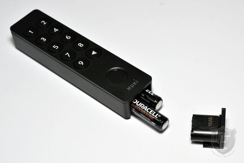 Wo das Keypad der ersten Generation noch von zwei Knopfzellen mit Strom versorgt wurde, kommen bei dem Keypad 2 vier AAA-Batterien zum Einsatz.