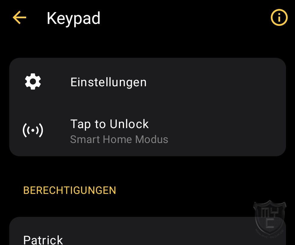 Unterhalb der auf der Übersichtsseite angezeigten Berechtigungen findet man zudem auch eine Schaltfläche, über welche man weitere Berechtigungen hinzuzufügen kann. Die an dieser Stelle hinzugefügten Berechtigungen dienen jedoch nur zum Entsperren mittels Fingerabdruck oder eingegebenem Code. Sperrberechtigungen für die Tap to Unlock Funktion müssen direkt in der jeweiligen Smart Home App eingerichtet werden.