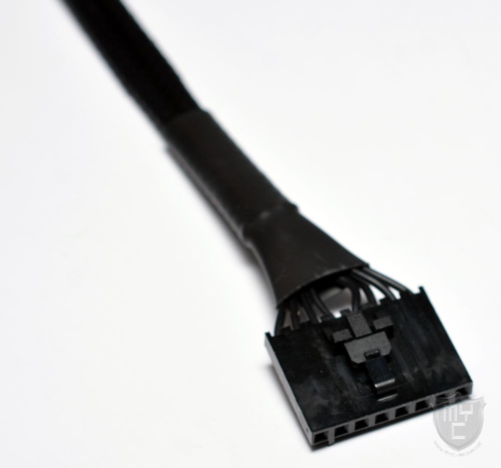 NZXT setzt bei dem eingesetzten Kabel auf ein achtadriges Anschlusskabel, dessen Stecker sich nicht ohne den im Lieferumfang enthaltenen Adapter mit einem Mainboard verbinden lässt.