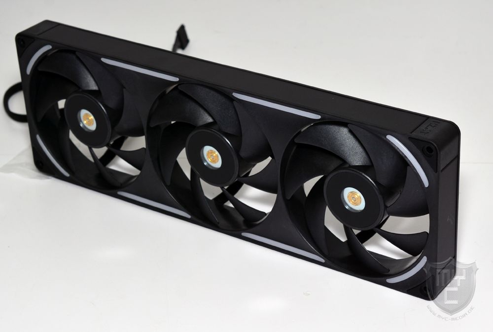Entnimmt man den F360X Performance RGB-Einzelrahmenlüfter aus seiner Verpackung, so hat man quasi nicht nur einen 120-mm-Lüfter vor sich stehen, sondern 3 120-mm-Lüfter in einem Lüfterrahmen.