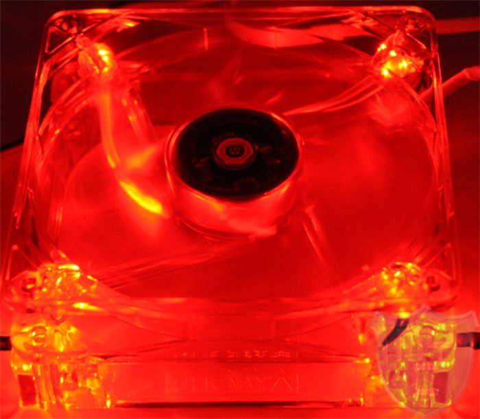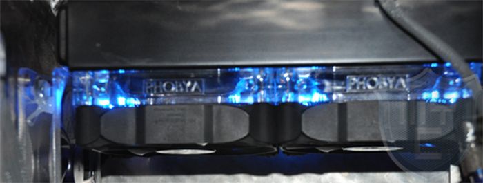 Als Lüfter kamen beim Test der 120mm Vorkammern drei Phobya G-Silent 12 1500rpm Red LED, und beim 140mm Test drei NB-Blacknoise Silent Pro 140mm PK3 zum Einsatz.