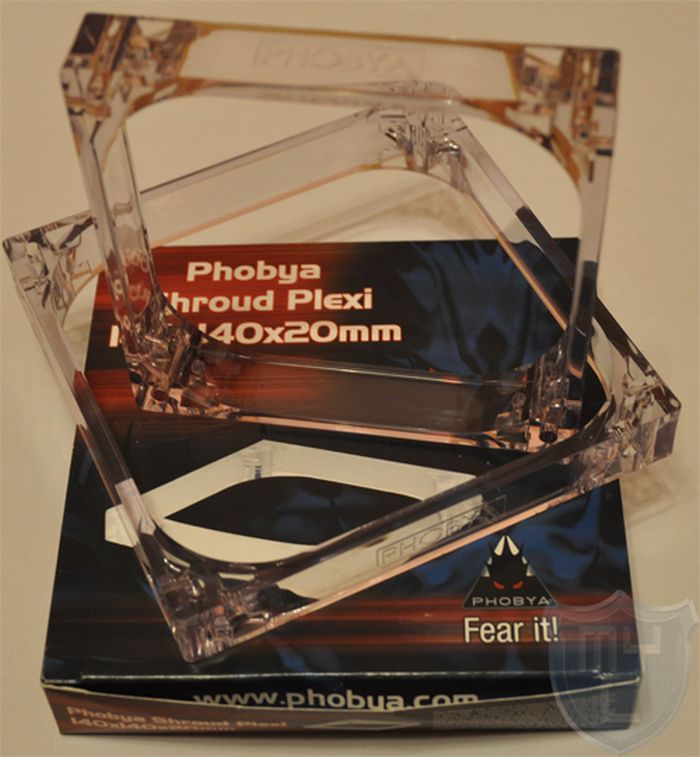 Die Shrouds aus dem Hause Phobya sind komplett aus transparentem Plexiglas gefertigt und auf einer Seite ist das Phobya Emblem eingeprägt.