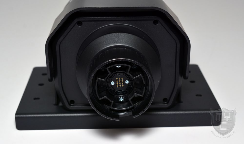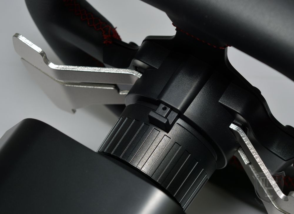 Anders, als man es von echten Rennwägen sowie Direct-Drive-Racing-Wheels aus dem gehobenen Bereich her kennt, wurde die Aufnahme jedoch nicht mit einem aus Metall gefertigten Schnellverschluss ausgestattet.