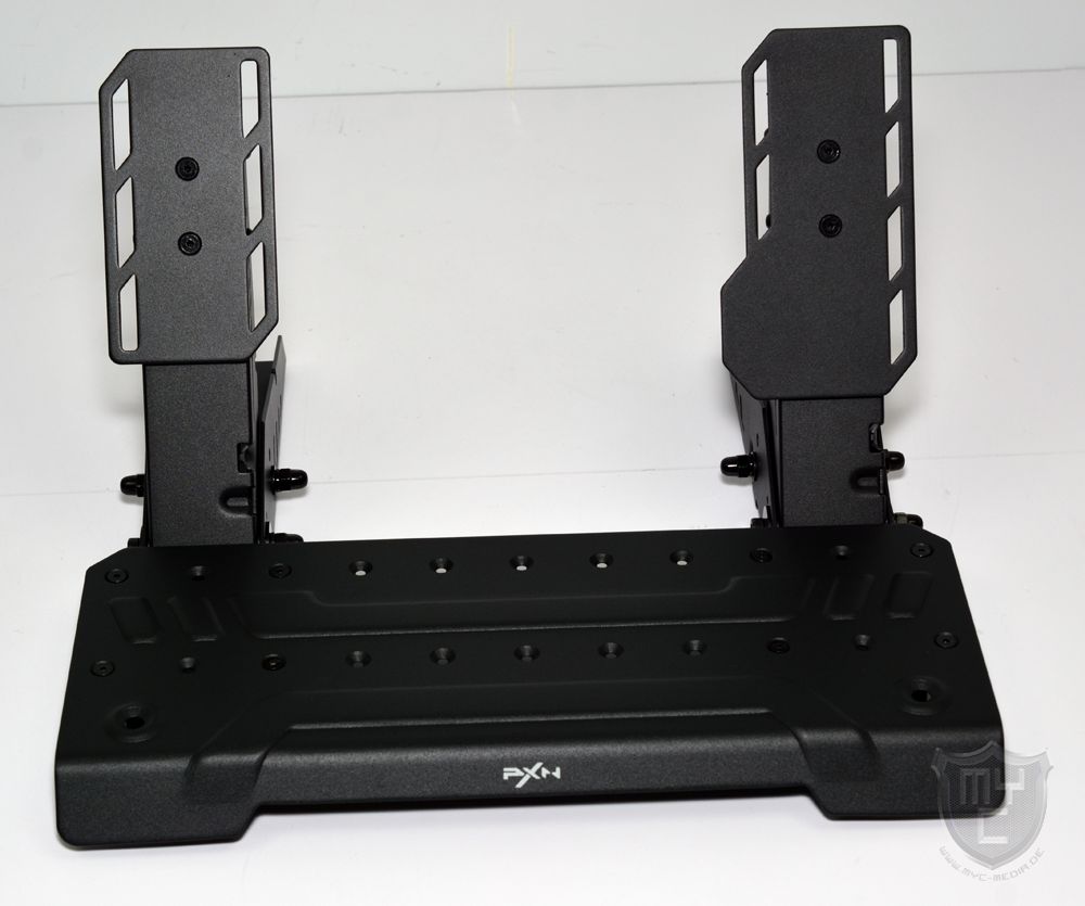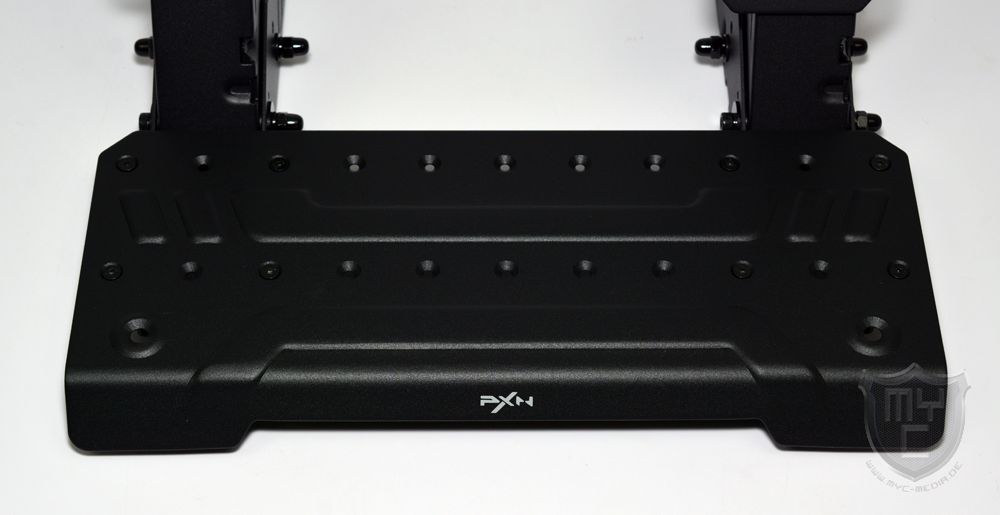 Um die Basiseinheit an einem Sim Racing Rig montieren zu können, hat PXN diese an ihrer Unterseite schon mit einer Metallplatte ausgestattet, welche auf der linken und rechten Seite mit jeweils drei Montagebohrungen versehen wurde.