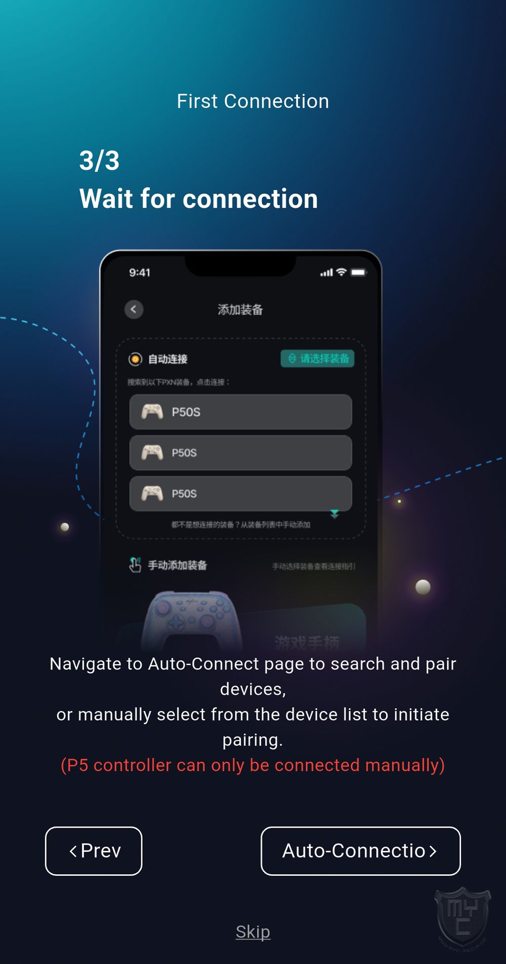 Nach dem Öffnen der App muss man im ersten Schritt das gewünschte Lenkrad mit dem Smartphone koppeln. Klickt man hierzu auf die Schaltfläche “Add Device” gelangt man jedoch vor der eigentlichen Kopplung erst in eine kurze Einleitung, welche man auf Wunsch auch überspringen kann.