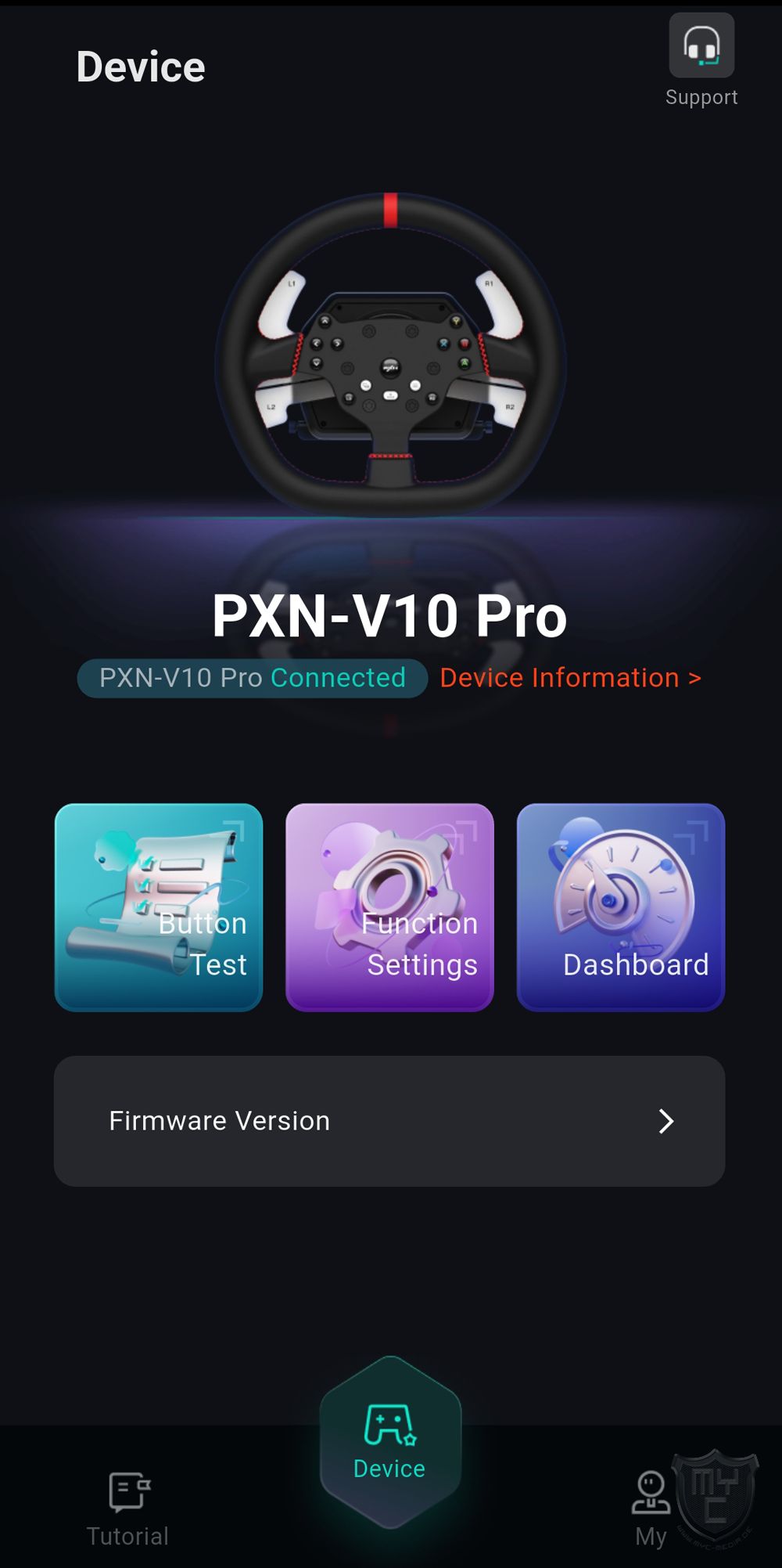 Verwundet hat uns hierbei jedoch, dass uns die PC-Software anzeigte, dass die Firmware der eingesetzten Basis nicht aktuell ist und uns ein Update bereitstellte. Die PXN Nexus App zeigte bei gleichem Firmwarestand hingegen an, dass die installierte Firmware aktuell ist.