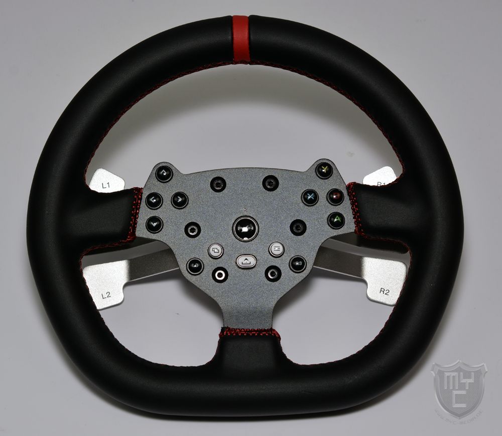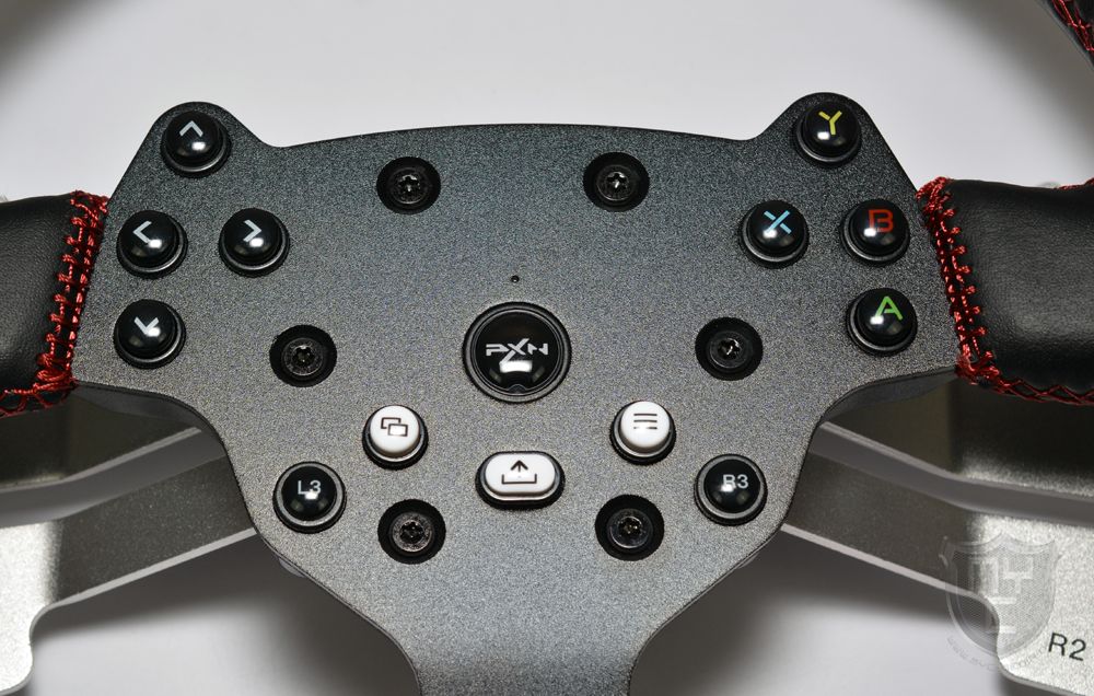 Mittig wurde das Lenkrad mit einem schwarz eloxierten Aluminiumelement ausgestattet, in welches PXN 14 Bedienelementen integriert hat.
