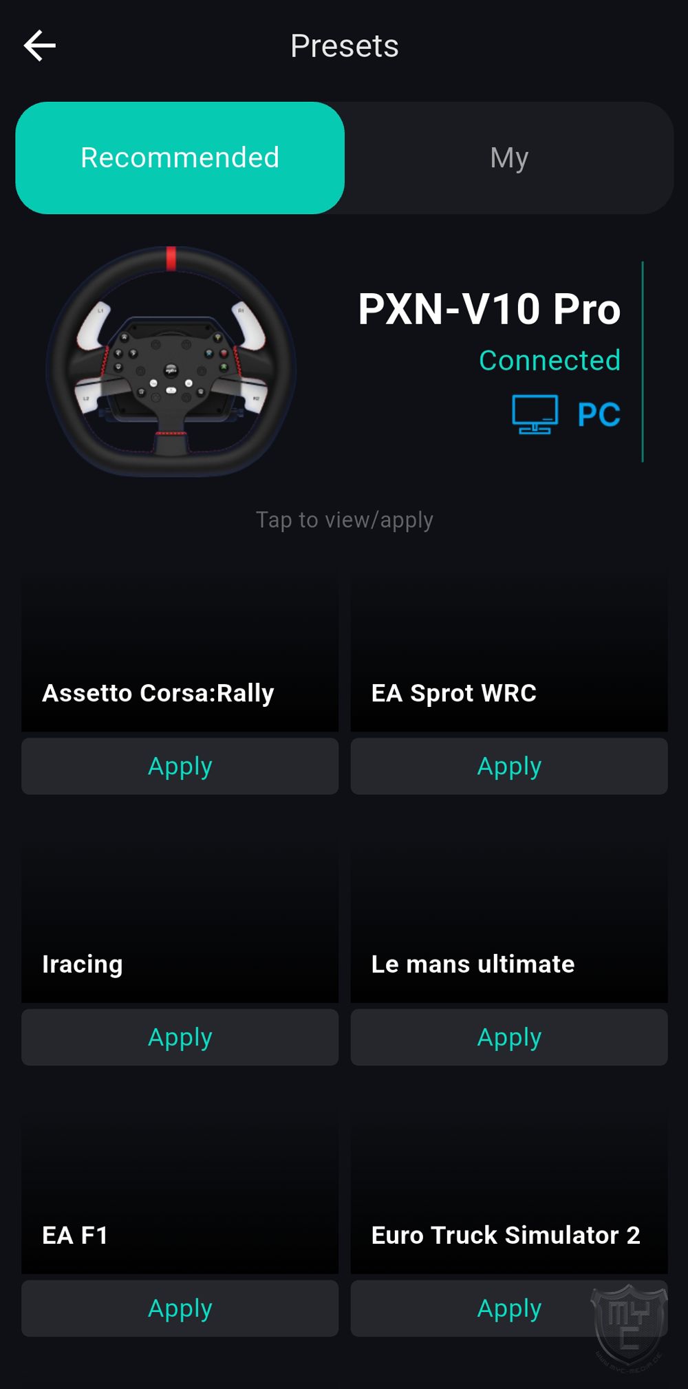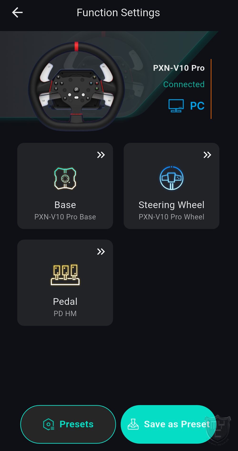 sondern man kann auch aus Voreinstellungen wählen, welche PXN schon für die bekanntesten Rennsimulationen bereitstellt.