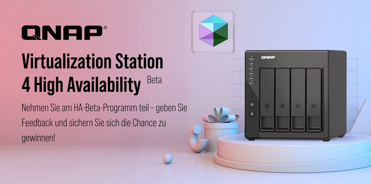 QNAP® Systems, Inc., ein führender Innovator von Computer-, Netzwerk- und Speicherlösungen, hat heute die Virtualization Station 4.1.0 veröffentlicht, welche erstmalig die Betaversion von Virtual Machine High Availability (HA) enthält. Wir laden Benutzer ein, am Beta-Testprogramm teilzunehmen, um die High Availability Architektur für virtuelle Maschinen mit minimalen Ausfallzeiten zu erleben. Teilnehmer, die Feedback geben, haben die Chance, ein TR-004 JBOD zu gewinnen!