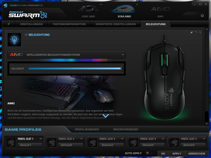 Bei der von ROCCAT bereitgestellten Software handelt es sich um die neue SWARM-Software, welche dazu in der Lage ist, auch mehrere Geräte gleichzeitig zu verwalten.