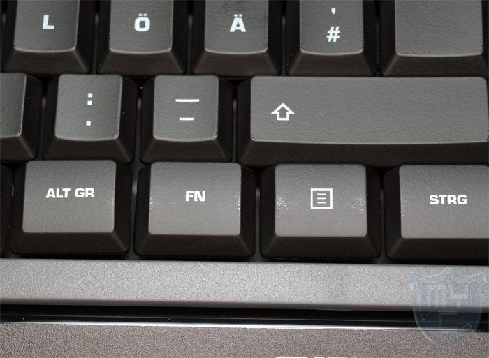 Mittels der verbauten FN-Taste konnte ROCCAT die Skeltr mit zusätzlichen Funktionen ausgestatteten. So bietet einem die FN-Taste in Kombination mit den verschieden F-Tasten die Möglichkeit, zur Audiosteuerung, das aufrufen des Browsers oder gar das aufzeichnen von Makros.