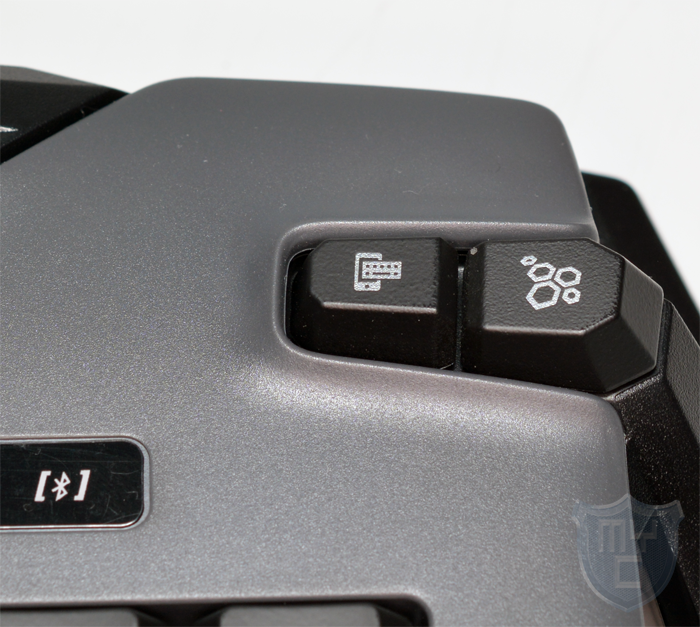 Rechts neben diesen Tasten wurde neben der Modellbezeichnung auch noch der Schriftzug “SMART COMMUNICATION GAMING KEYBOARD” auf den Tastaturrahmen aufgedruckt, welcher einem schon einen kleinen Ausblick auf die weiteren Funktionen der Tastatur gibt, auf welche wir im weiteren Verlauf noch genauer eingehen werden..