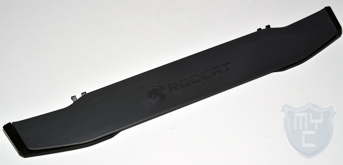 Mittig wurde das ROCCAT Logo in das graue Kunststoffelement der Handballenauflage eingeprägt.