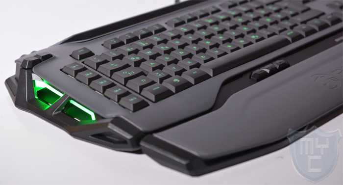 Schaut man sich einmal das Tastenlayout der Skeltr etwas genauer an, so wird einem auffallen, dass man dieses in ähnlicher Form schon von anderen Tastaturen aus dem Hause ROCCAT kennt. Aus diesem Grund hat ROCCAT auch bei der neuen Skeltr nicht an Zusatztasten gespart. Den Anfang machen drei frei programmierbare Daumentasten, welche unterhalb der Leertaste angesiedelt sind.