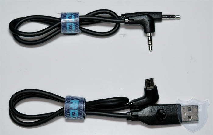 Das eigene Smartphone oder Tablet kann jedoch nicht nur in dem Docking-Slot gestellt werden, sondern es kann auch mit der Tastatur gekoppelt werden, wodurch der Funktionsumfang erweitert wird. Um das gewünschte Smartphone oder Tablet mit der Tastatur zu verbinden, liegen dem Lieferumfang zum einen zwei Kabel bei. Hierbei handelt es sich einmal um ein 3,5-mm-Klinkekabel und ein USB-Kabel.