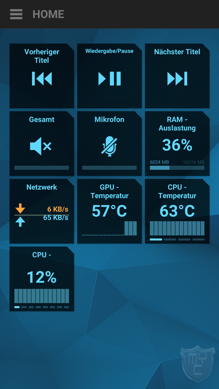 Bei Bedarf kann man alle Elemente, welche einem die Software bietet, auf die Übersichtsseite packen, jedoch wird diese dann etwas unübersichtlich, da man auch bei einer Auflösung von 1980 Pixeln in der Höhe schon scrollen muss.