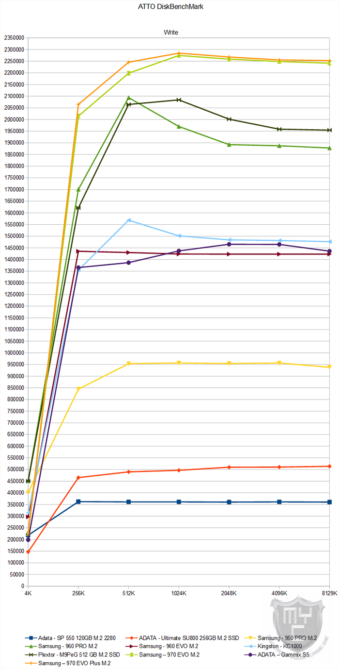 Vergleicht man einmal das Testergebnis der 970 EVO Plus mit den anderen Modellen aus dem Testfeld, so spiegelt sich hier das Ergebnis aus den vorangegangenen Tests wieder, denn die 970 EVO Plus konnte auch in diesem Test eine sehr gute Leistung erzielen.