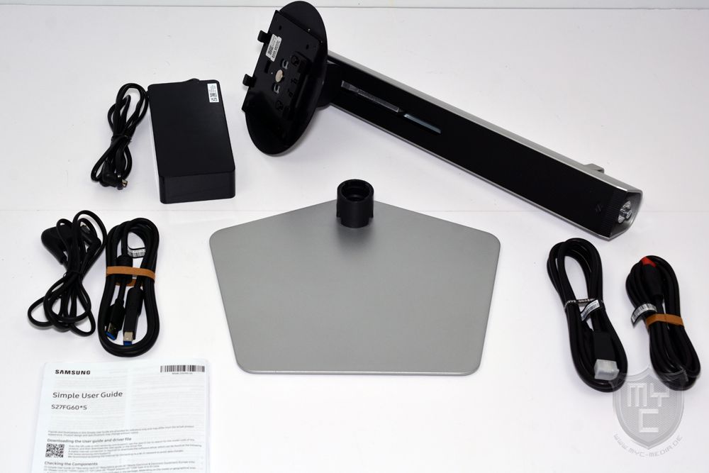 Entnimmt man den Odyssey OLED G6 (G60SF) aus seiner Verpackung, so hat man einen zerlegten 27″ QD-OLED (Quantum Dot Organic Light-Emitting Diode) Gaming-Monitor vor sich liegen, welcher in einem sehr schlichten Design gehalten ist.