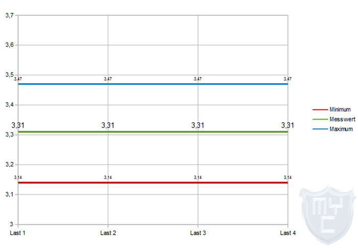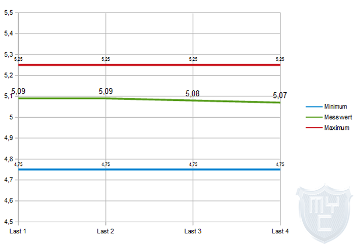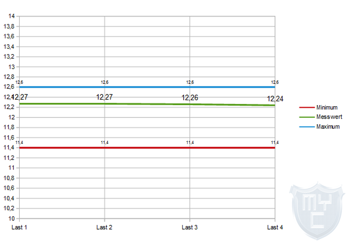 Die Spannungen sollten nach Möglichkeiten auch bei einem Lastwechsel möglichst gleich bleiben und nicht nach oben oder unten ausbrechen.