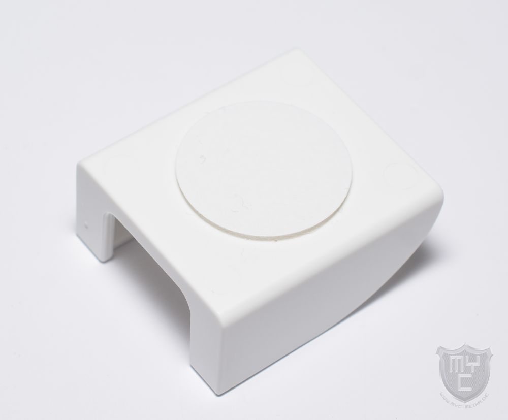 Zur Befestigung der Control Box liegt dem Lieferumfang eine kleine Kunststoffhalterung bei, welche auf ihrer Rückseite mit einem doppelseitigen Klebepad ausgestattet wurde.