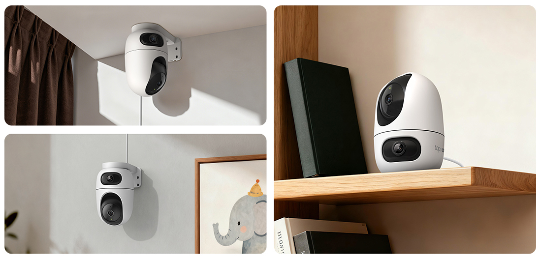 Mit Funktionen wie 360°-Patrouillenmodus, bis zu acht voreingestellten Ansichtspunkten und individuell planbaren Zeitabläufen passt sich die Kamera unterschiedlichen Anforderungen im Alltag an. So lässt sich die Kamera sowohl für kontinuierliche Raumüberwachung als auch für gezielte Kontrollroutinen einsetzen, je nach Tageszeit oder Bedarf. Die Installation ist flexibel: Die Kamera kann aufgestellt, an der Wand montiert oder an der Decke befestigt werden und fügt sich unauffällig in unterschiedliche Wohnumgebungen ein.